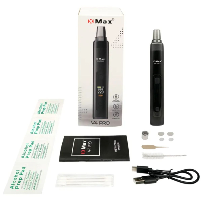 Conținut pachet: 1 x XMax V4 Pro Dry Herb Vaporizer, 1 x cablu USB pentru încărcare, 1 x instrument de curățare, 1 x manual de utilizare, 1 x ambalaj individual de retail.